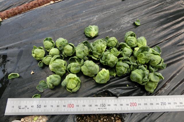 えっと、懸案だった芽キャベツですが、なんとなくいい感じになりました。