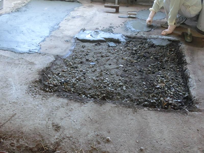 作業場の土間を補修します。