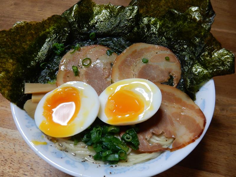 今日はゆで卵を作って、ラーメン。