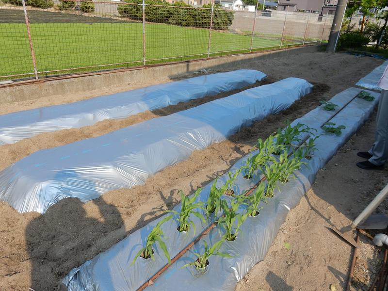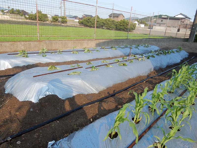 ピースも空豆も、引き上げてサツマイモを植えます。
