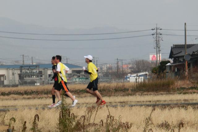 作業中に、選手が走り抜けて行きました。