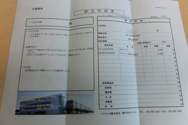 保証期間中なので、無料でした。