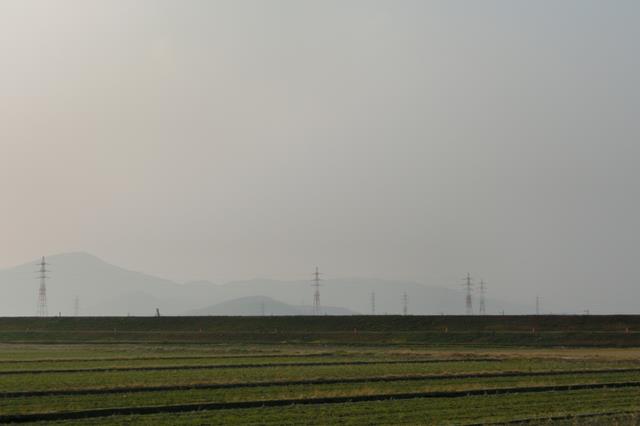 あの霞んだ中、旧2号線の歩道を走っている人が何人もいました。