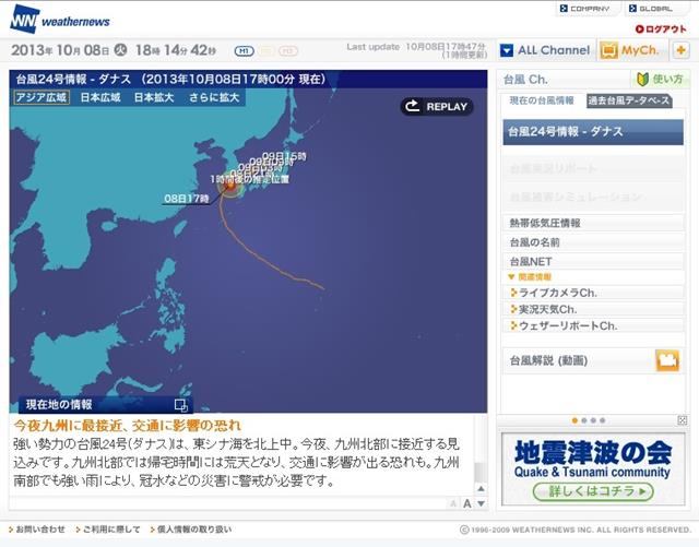 9年前にうちの屋根瓦を吹き飛ばした台風もこのコースだった。