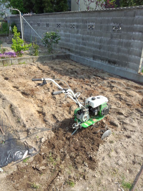 8時より、畑に肥料を入れ、鋤き込み開始。