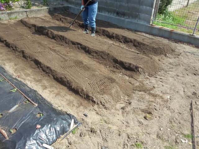 土に鋤きこんで、マルチを掛ければもう大丈夫。