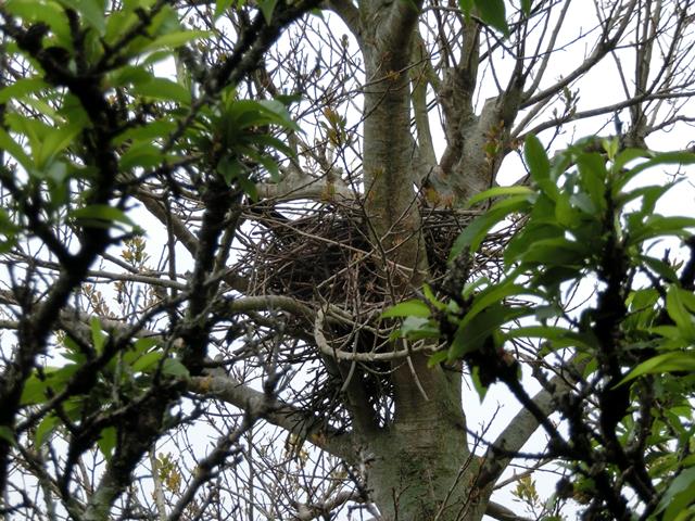 うちの隣の庭(藪)に、カラスが巣を掛けた。