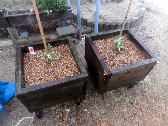 プランターは、先日葡萄を抜いた物。葡萄は無事に根付いた見たいで、元気よく成長しています。