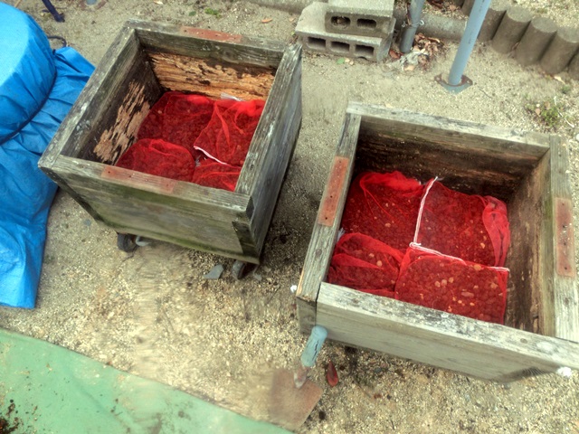 ネコやネズミが匂いに釣られてやって来ます。先日ネズミに半分位食べられてしまった。本当です。