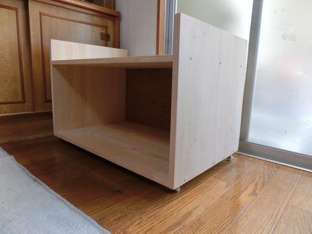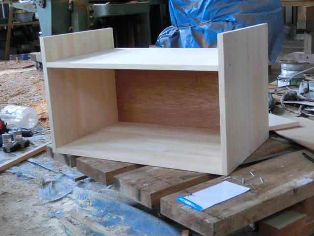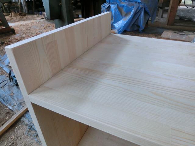 ビスにて固定。本当は、ダボかビスケットジョイントを使うとビスが見えずに綺麗に仕上がります。