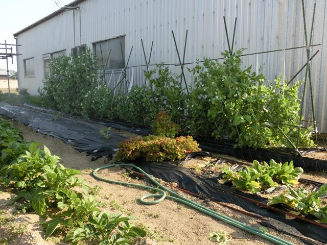 完成後にモロッコインゲンの柵。イボ竹で作ります。
