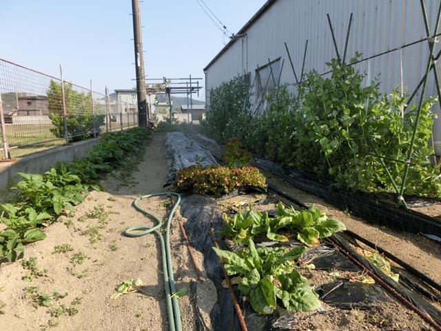 花壇と畑には40センチくらいの段差があり、畑が低くなっています。