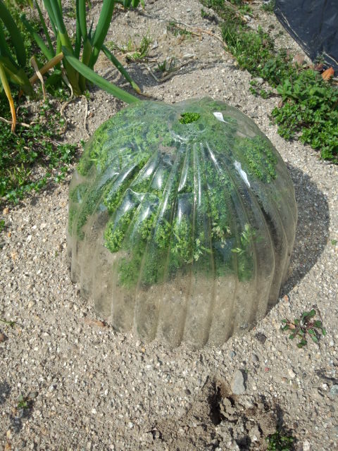 処分した白菜の横にはキャベツが4本。防虫ネットでしっかり対策済み。