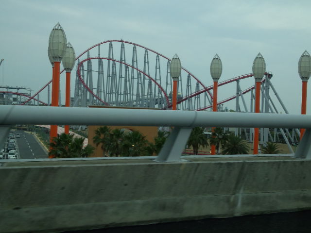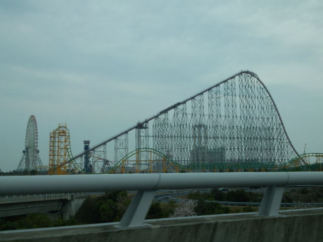 前方に長島スパランド。http://www.nagashima-onsen.co.jp/spaland/index.html/