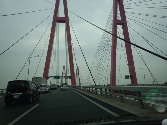 伊勢湾岸道路、飛島大橋。 渋滞なしですね。
