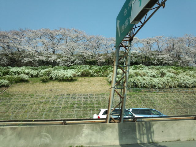 高速から見える桜は、どこも満開。