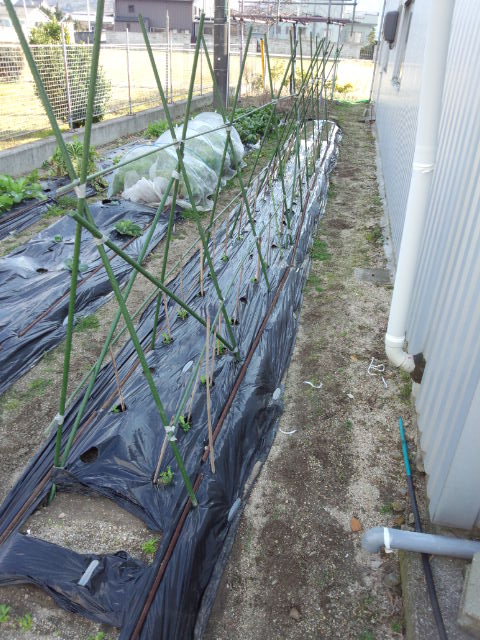 昨年11月18日に蒔いた豆に柵をすることにした。
