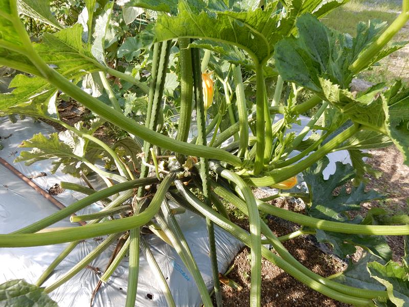 ズッキーニの支柱を補強