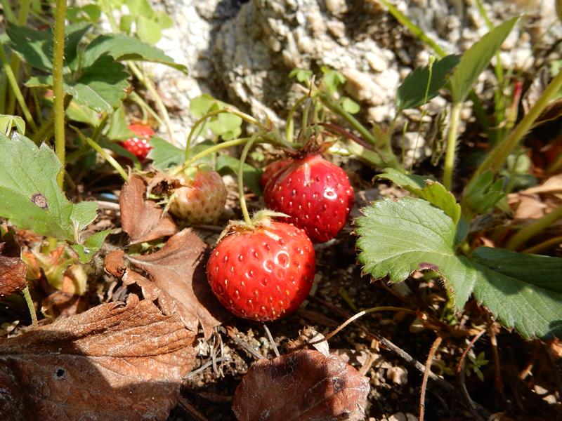 昨年、花壇に植えて放置していた苺に実がつきました。