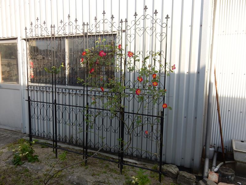 野菜用の大型プランターに、アンドン仕立ての支柱を作成