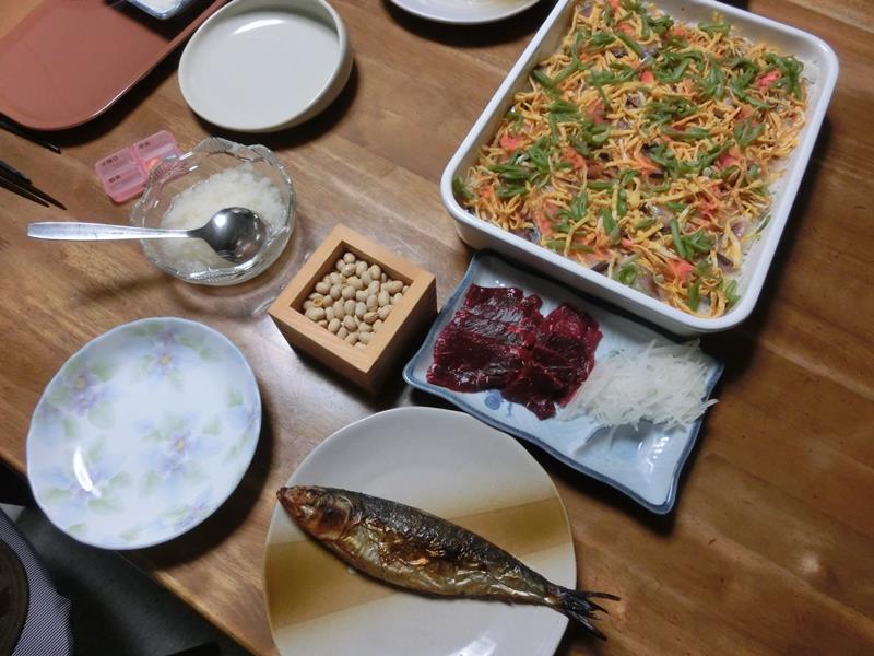 大豆とちらし寿司付き。
