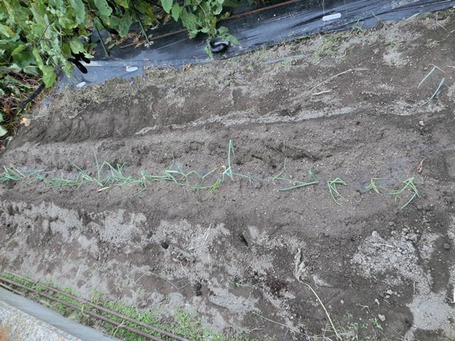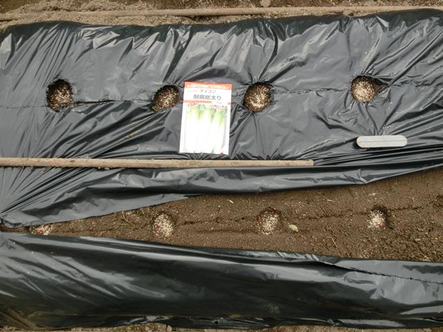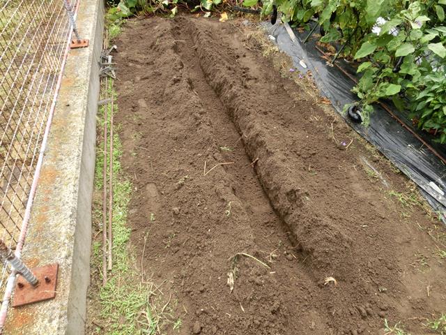 大根は、穴を開けて種を蒔くのに、人参と同じように筋蒔き様に切手しまいました。