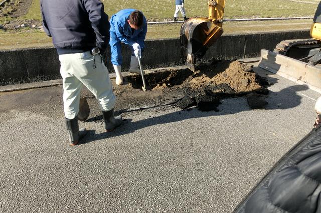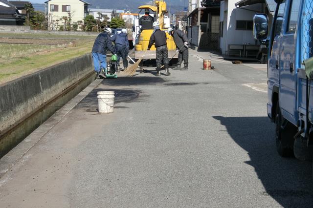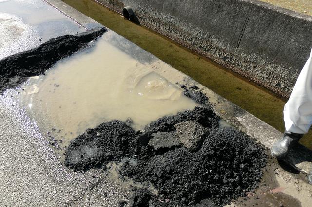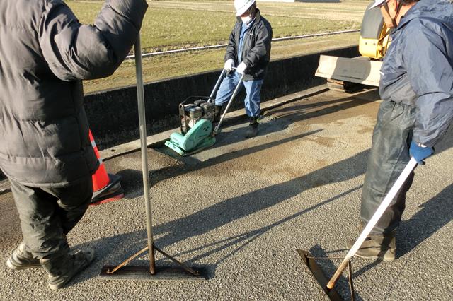 既設のアスファルト舗装の上にアスファルト舗装を行います。